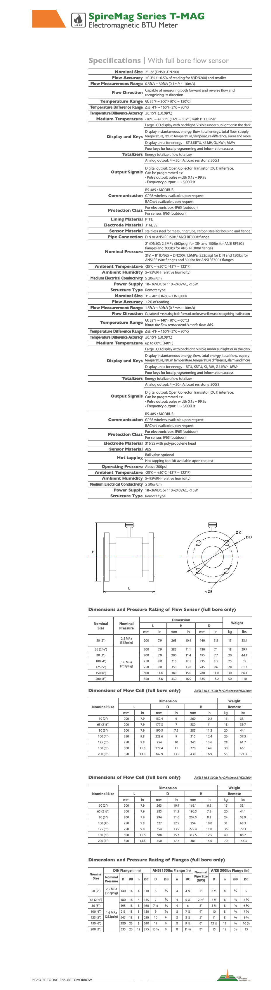 Combining the high accuracy and instantaneous response of MAG meter technology with paired 4 wire RTDs in a single transmitter, Spire’s TMAG provides climate control, energy production validation and revenue metering that you can rely on. Full bore sensors to 12”, and insertion sensors for larger size processes, Spire TMAG delivers real time measurement of BTU, kW, GJ and flow with electromagnetic metering precision.